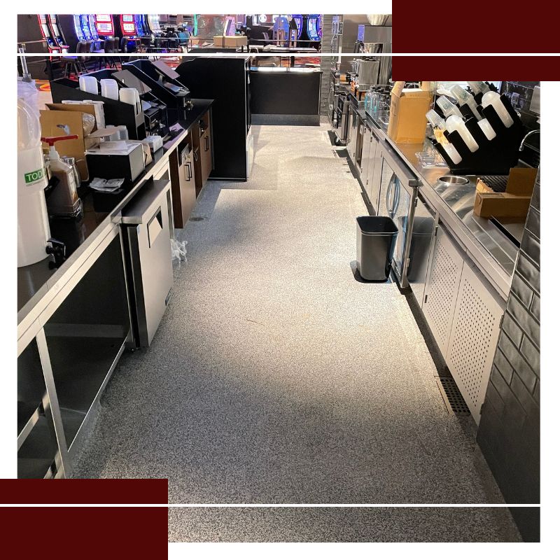 Safe and environmentally friendly. We do not use solvents, so no VOCs are released in your hotel or casino flooring application. Urethane concrete and JetRock flooring’s properties are textured and slip-resistant for the utmost safety for your guests in the FOH and your staff in the BOH areas.
